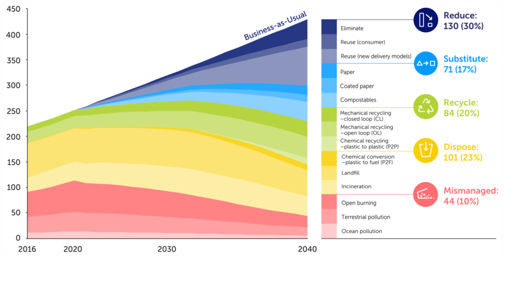 Going forward, it is important that governments quickly agree on and implement an ambitious plastics treaty in order to ensure that the situation does not deteriorate further. As the diagram below shows, alternatives to the business-as-usual scenario that keep plastic pollution at least around current levels are conceivable. With our support of the Business Coalition for a Global Plastics Treaty we hopefully get one step closer to achieving this.