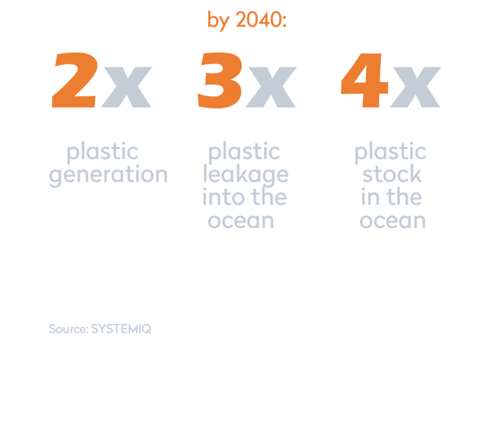 Unfortunately, in a business-as-usual scenario the situation is only going to get worse. Plastic production is widely expected to double in the coming 20 to 30 years, representing virtually the only real source of growth for oil producers going forward. Since much of the growth in plastic consumption will take place in countries with less advanced waste management systems due to population growth and rising per capita plastic consumption, plastic leakage into the ocean is even expected to triple and total plastic accumulated in the ocean will roughly quadruple. In terms of climate change, this also implies that about 20% of the 1.5° carbon budget will be used up by plastics alone.