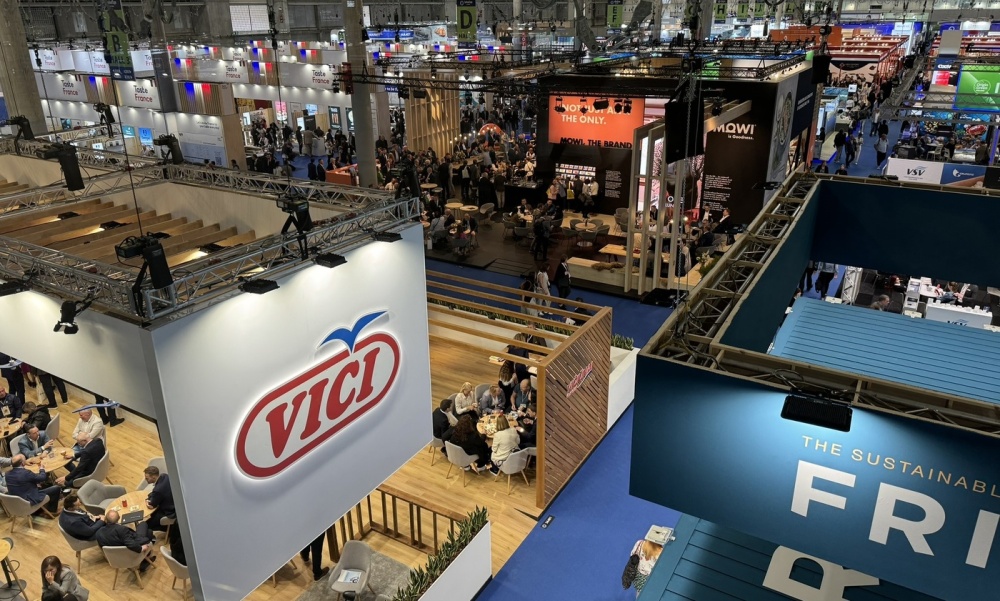 View from above into one of the seven huge exhibition halls at the Seafood Expo in Barcelona. Source: Bonafide