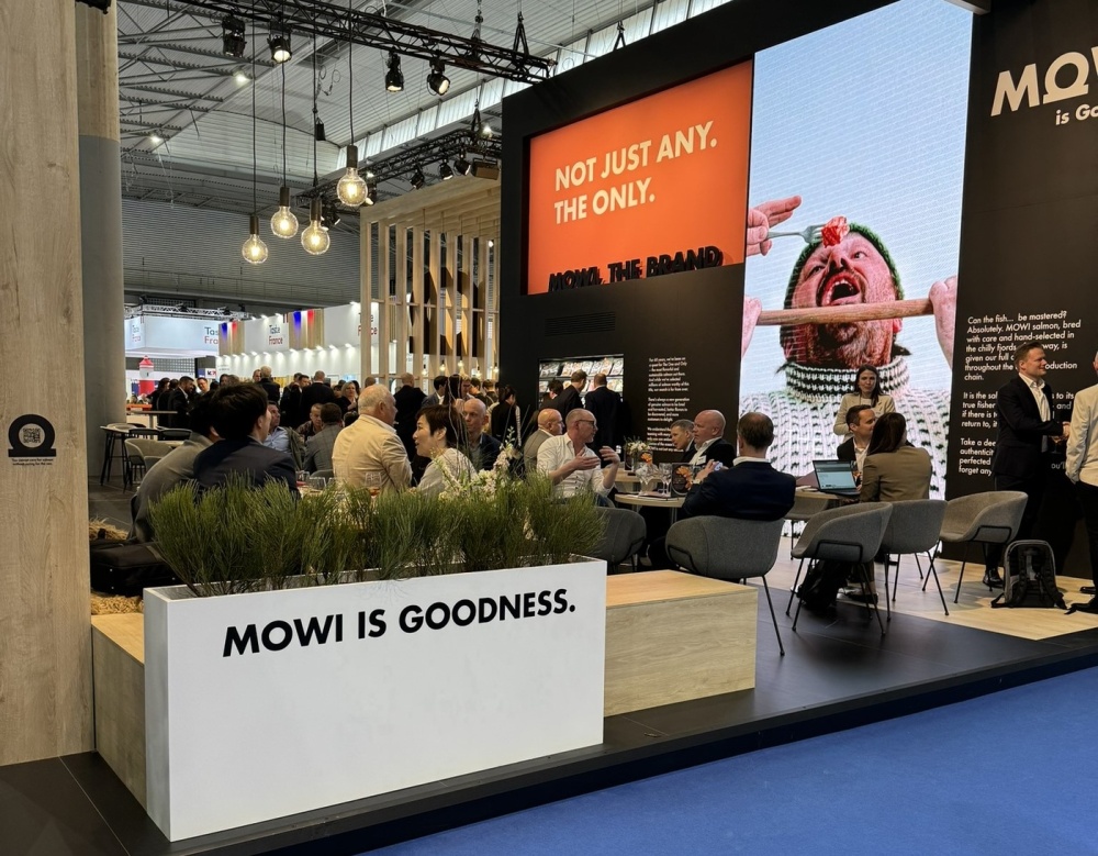 Mowi's trade fair stand under the sign of its global brand. Source: Bonafide
