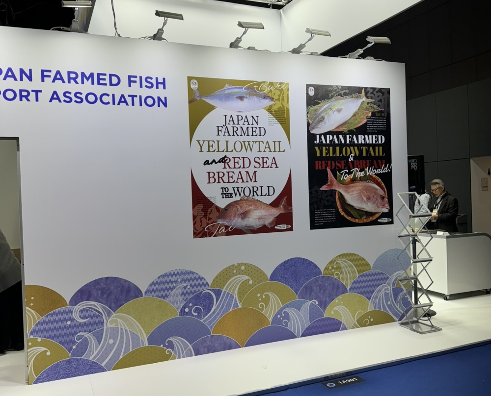 Stand of the Japan Farmed Fish Association promoting yellowtail kingfish. Source: Bonafide