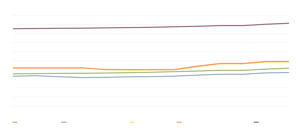 ESG scores often only differ from each other in the second decimal place, so to make them more comprehensible we have also present the current month’s scores as relative ESG ratings in the form of pie charts. Relative ESG ratings are calculated using all ESG scores available at ISS ESG. This “total market”, comprising almost 9000 scores, is divided into four quantiles and the resulting threshold values are used to award ratings.